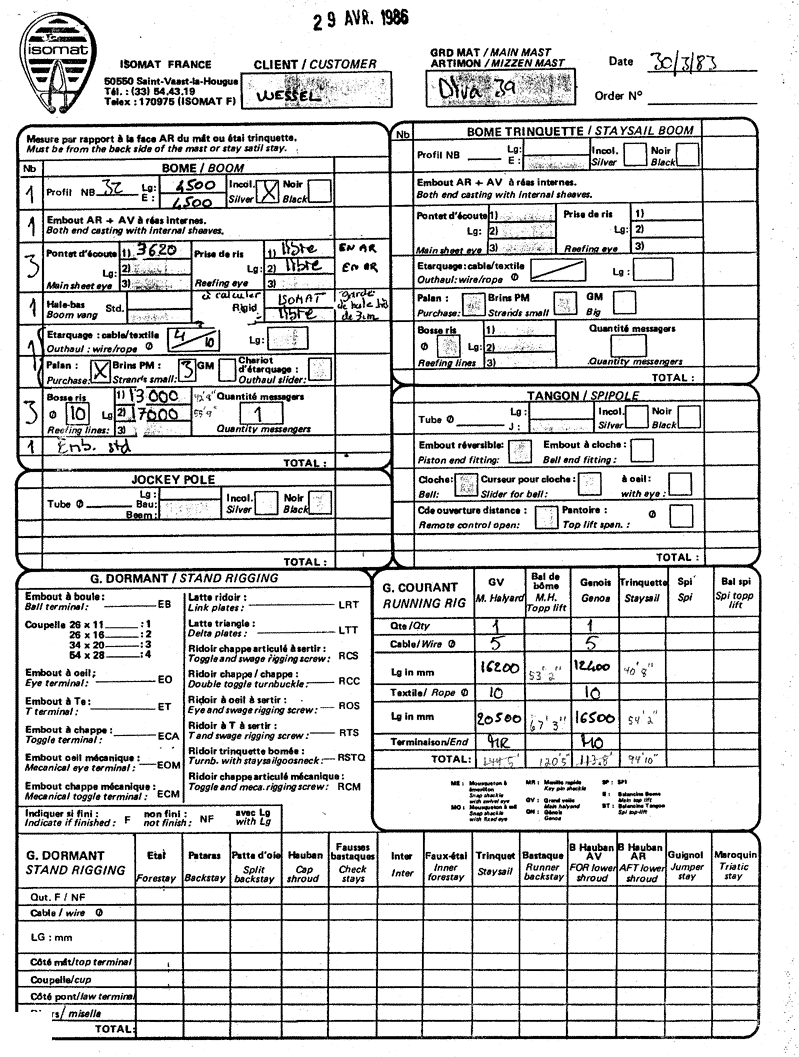 Mast Order (Isomat) :