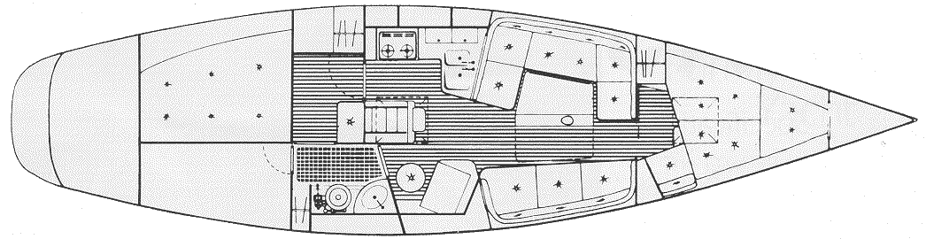 The head, with standing headroom, is located amidships for